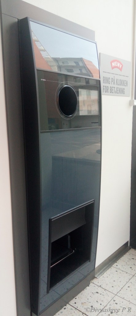 Later I did some searching and found out that in Scandinavia, during the 1980s, a deposit and return system was employed for effective recycling of cans and bottles. The machine used for it is called as “Reverse Vending Machine” which is popularly known as “Pant Machine”.