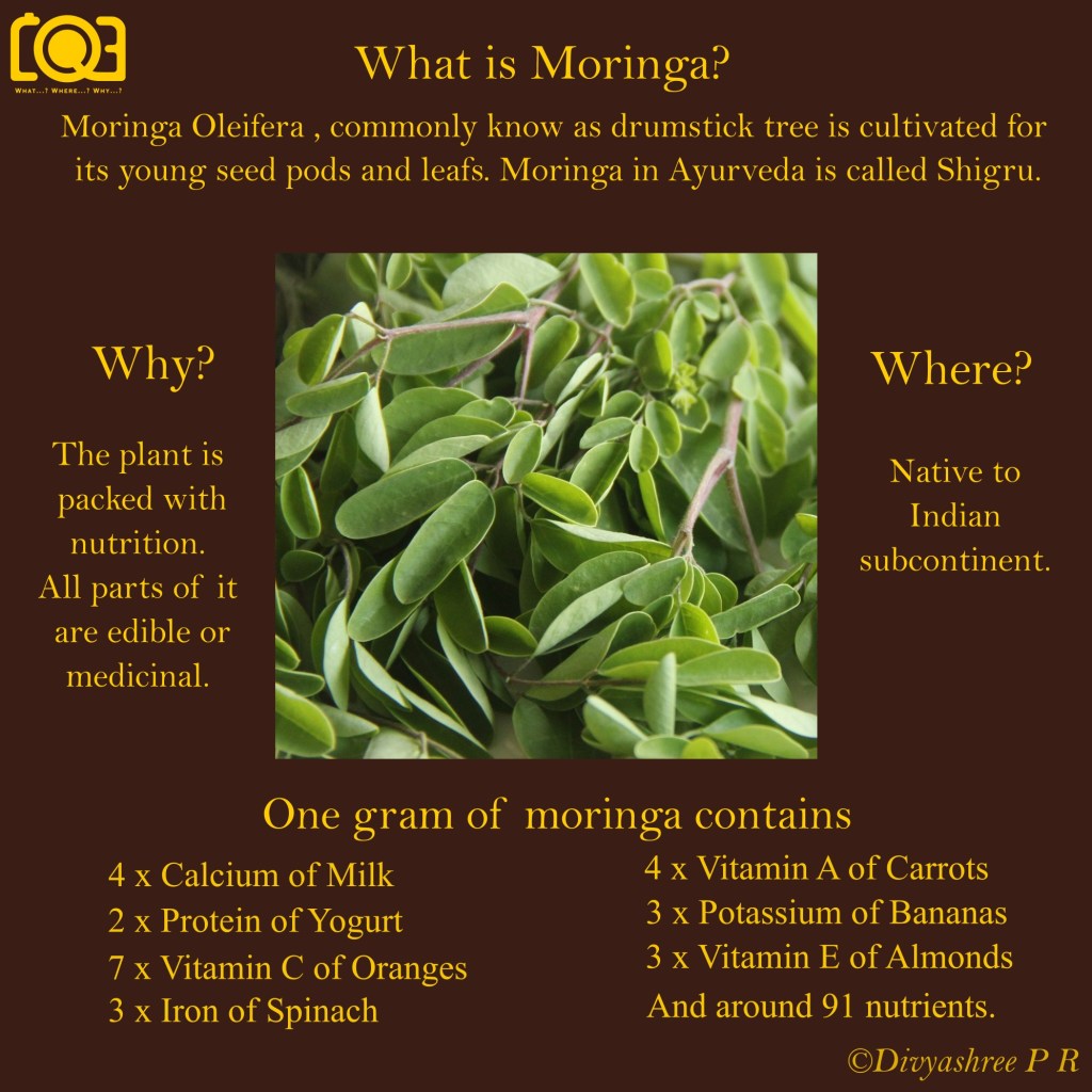 Moringa in Ayurveda is called as Shigru, all parts of this are edible or medicinal. In Ayurvedic medicine these leaves are used to prevent and treat over 300 diseases. It is a leaf packed with nutrition.