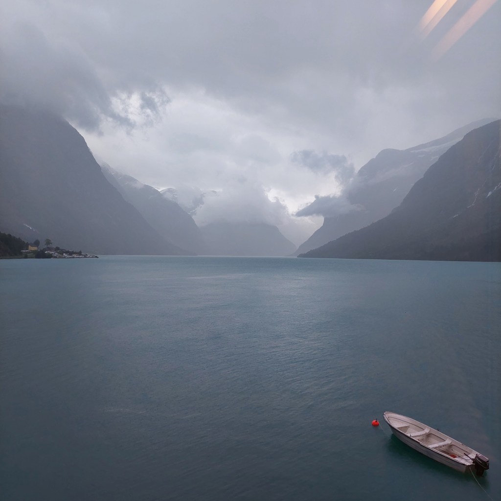 In the sleepy village of Loen, we boarded the Loen Skylift cable car to ascend the 1011m to reach the top of Mount Hoven. In just five minutes we witnessed the most stunning fjord, mountain, and village views in the whole of Norway. From the skylift, you can see a surreal view of the calm glacial waters of the fjord flow into the Lodalen valley. There is a souvenir shop, and a cafe for coffee and pastries if you need to warm up or buy souvenirs from Norway. There are a few walking trails from where the views are magnificent. Try to do this on a clear day for the best views!
