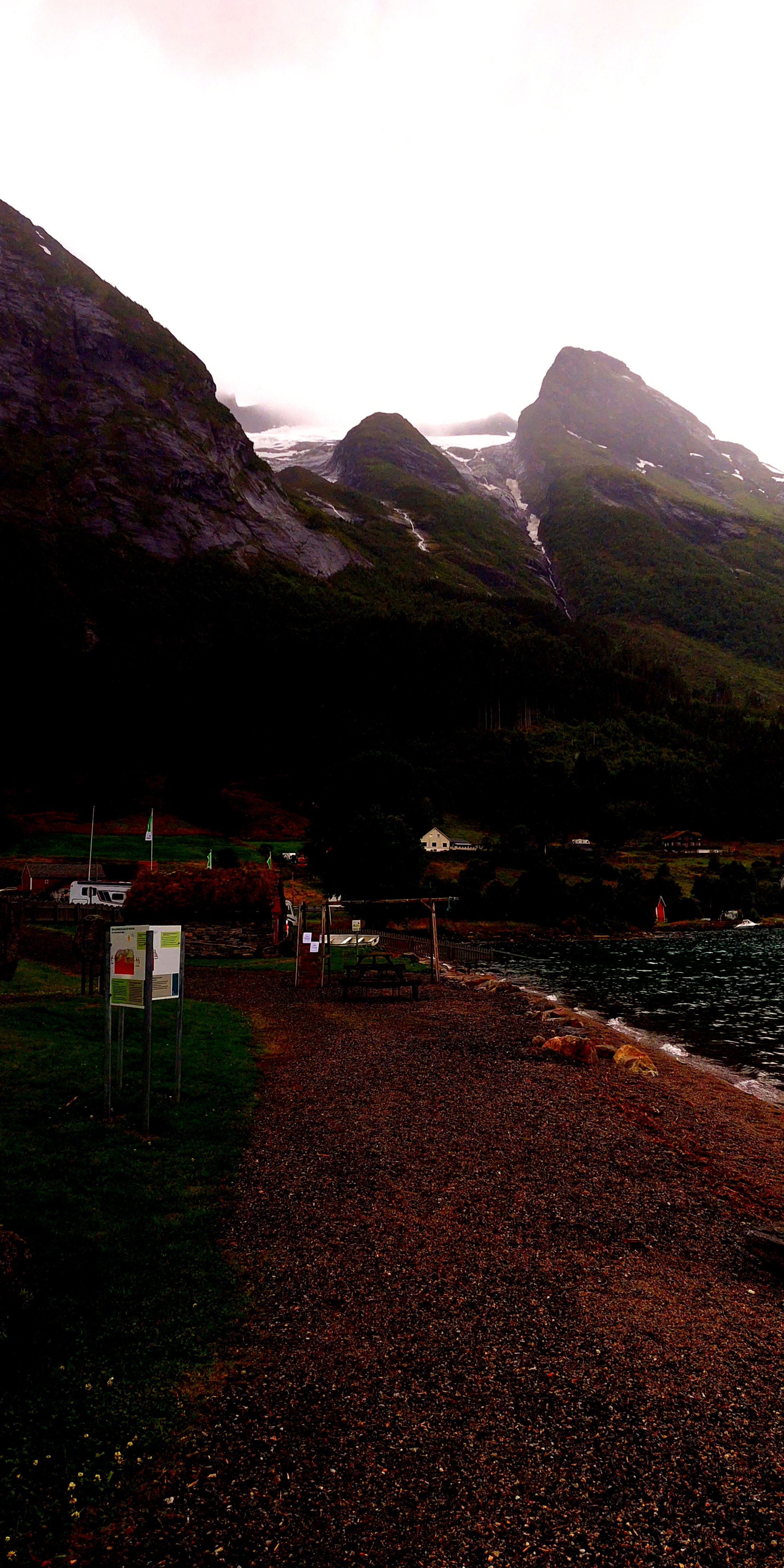 One of the destinations (last on the map) of our vacation in Olden is the Briksdal glacier. It is an emanation of the Jostedalbreen which is one of the largest glaciers in Norway. It is also protected within the national park by the same name. The landscape is extraordinary and there are an endless number of waterfalls. Here you find imposing mountains and no trace of human presence, besides yourself. You wouldn’t believe how much the glacier has shrunk since 1904! In fact, there are signs marking its rapidly retreating position over the years. This wonder of nature won’t be there forever, so see it before it’s gone.